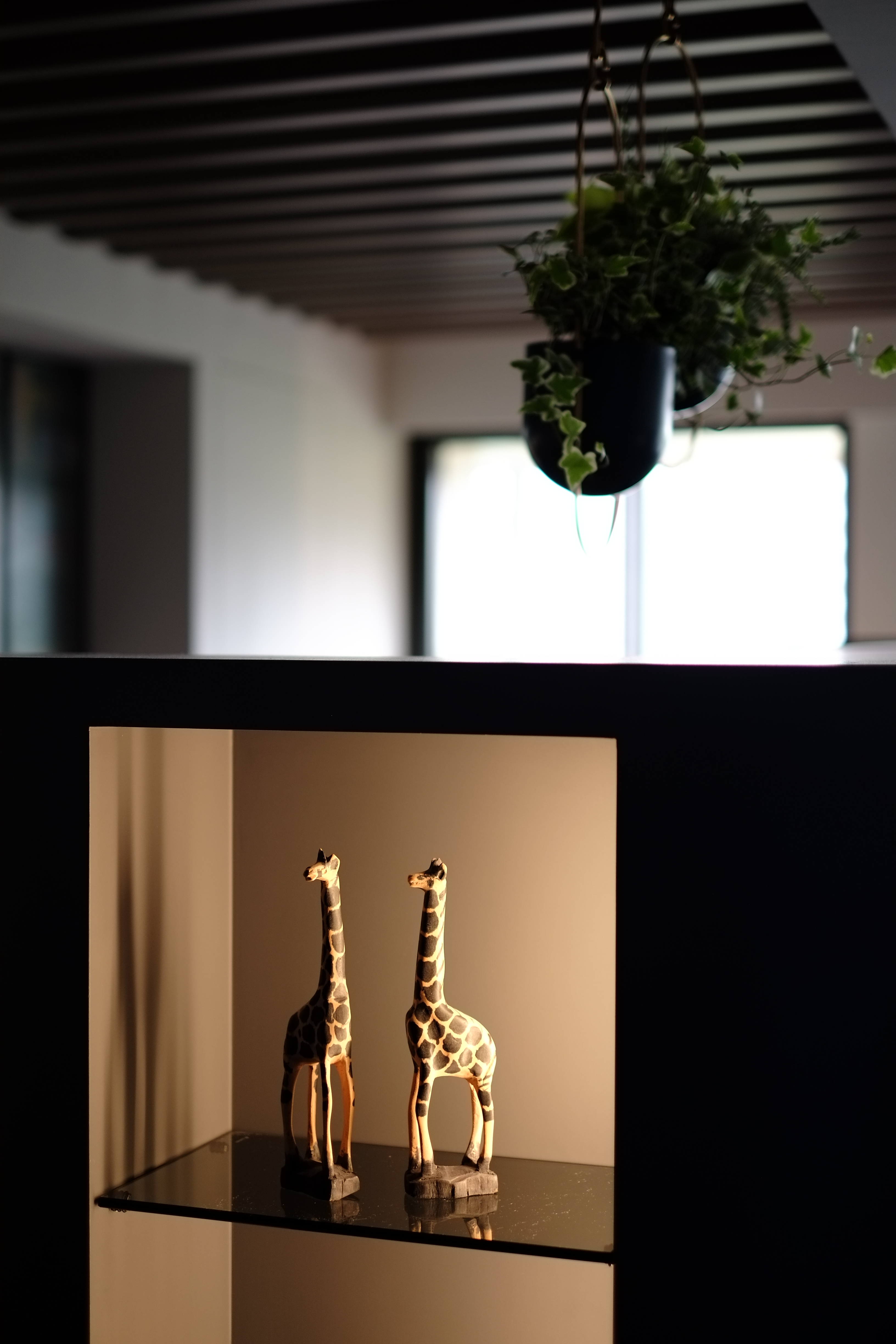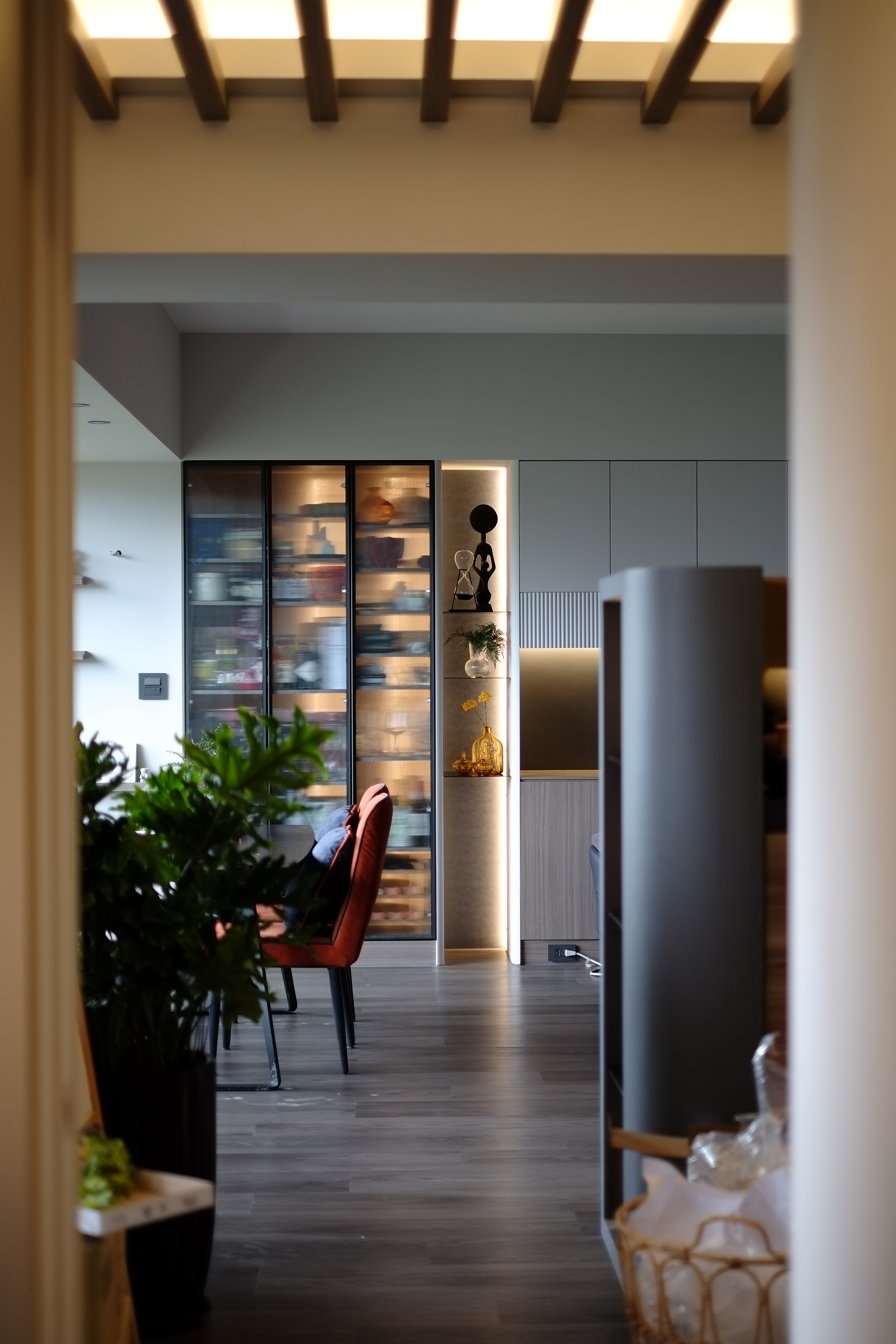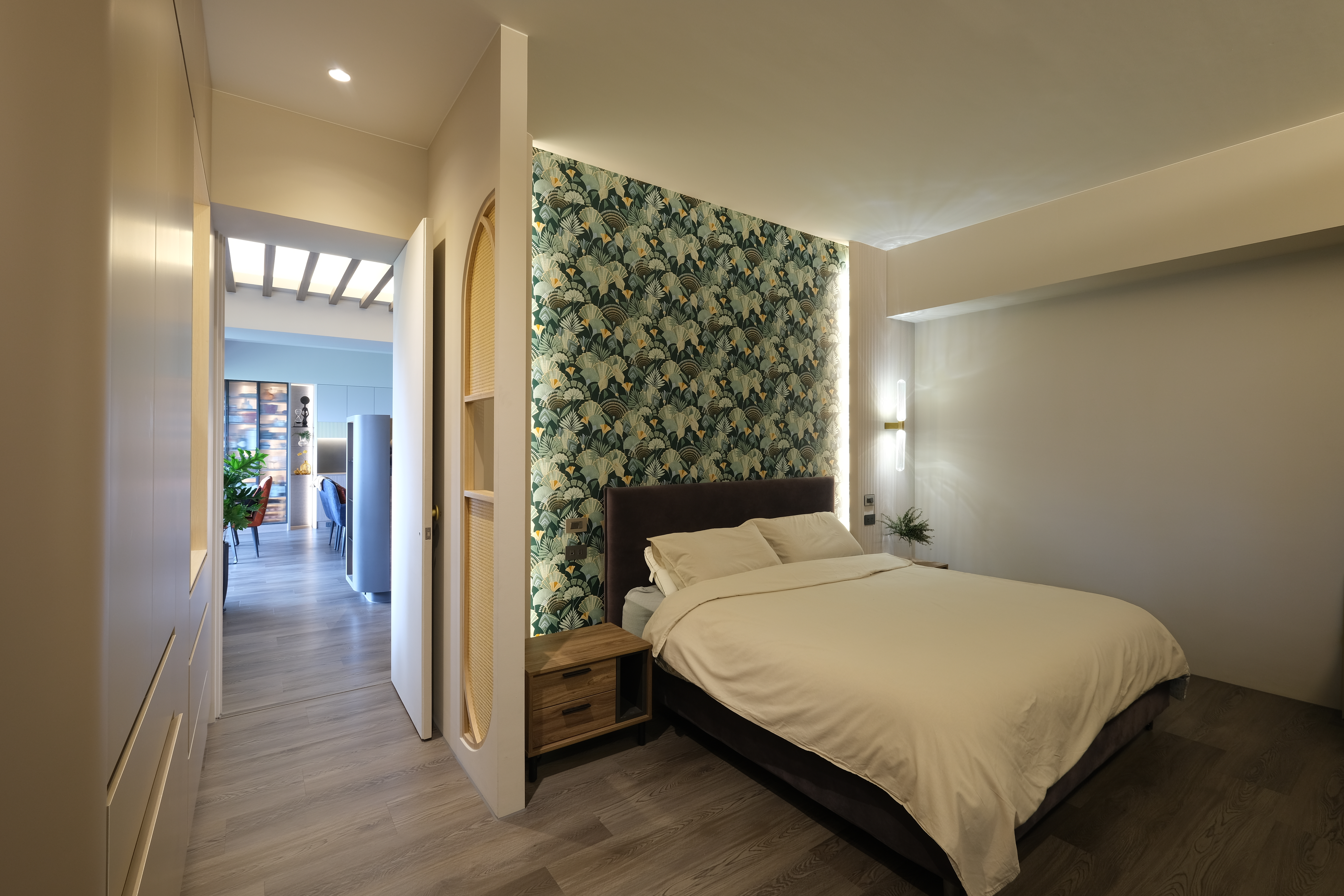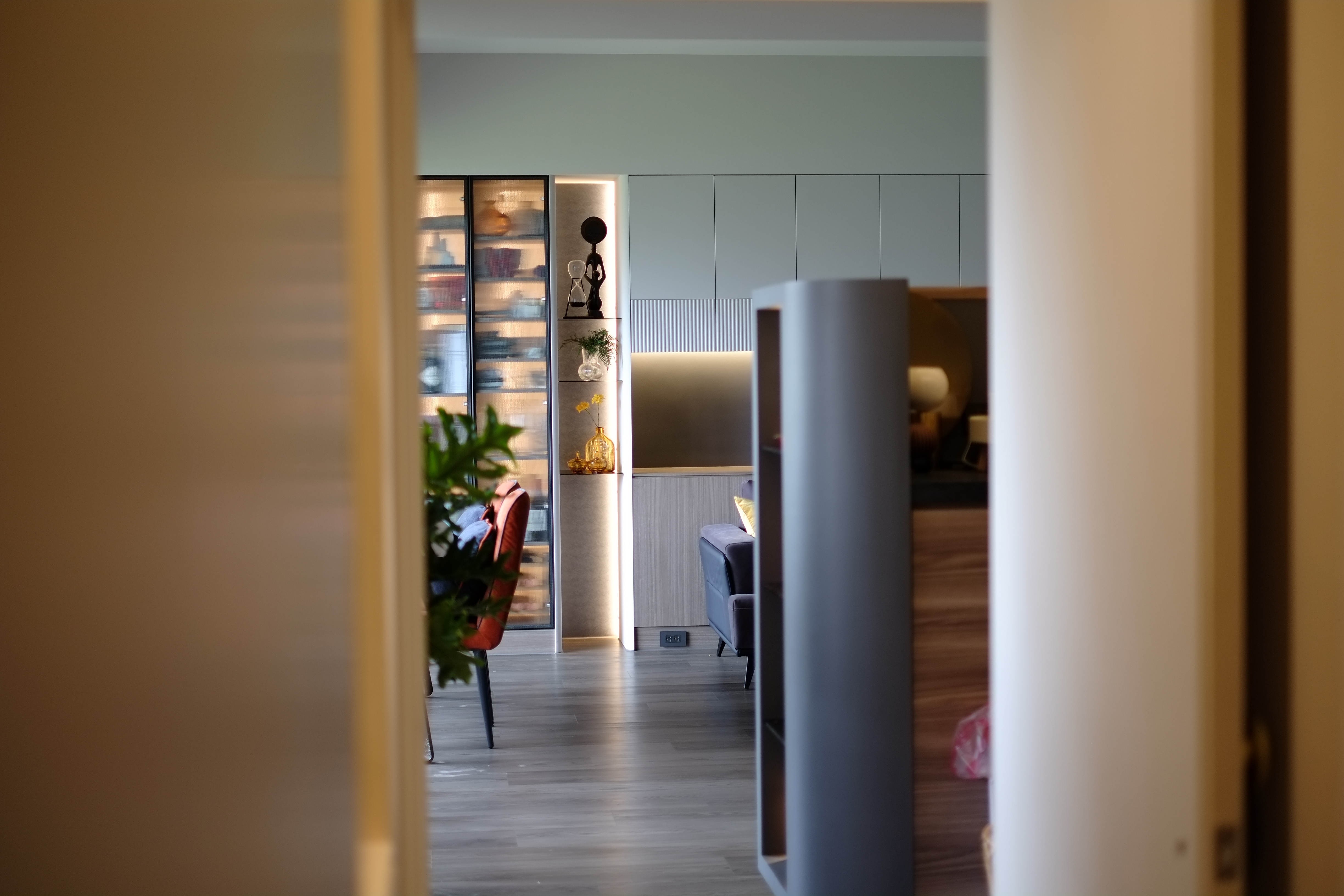 兩個男孩的男生宿舍,物品永遠是必要的雜繁。希望在空間中,能輕鬆交流並各自安好,緊密又獨立的個體與親子關係。我們大膽的在空間中央起個四方島,創造四個面向的機能,阻斷視覺的干擾,讓剩下的四感好好協作。機能區的並排與串聯,生活繞著島迴動,進行各種例行日常,一起看電影打電動,孩子寫作業,聽音樂弄花草。